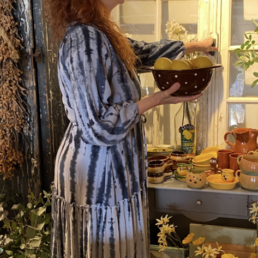 Beautiful dress One site Deze jurk is gemaakt van handgedrukte blokprint, dit is een zeer oude stempeltechniek en met zorg uitgevoerd.