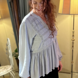 Blouse lichtblauw 100% viscose Maat S/M